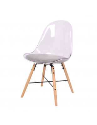 Matière : Coque : Polycarbonate transparent | Pieds : Chêne | Galette assise : Tissu