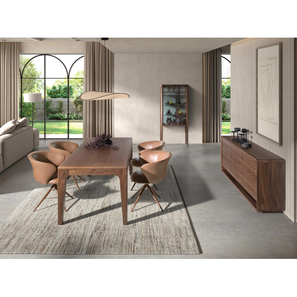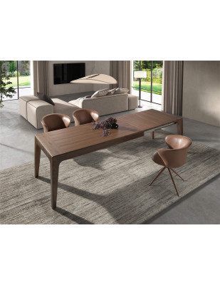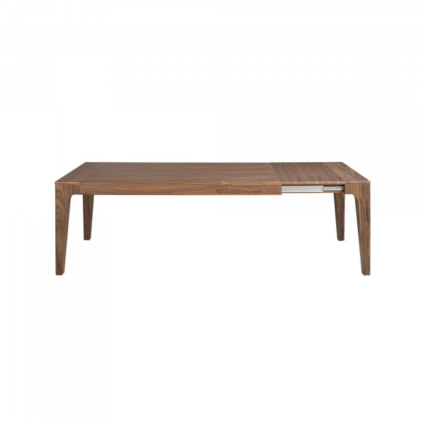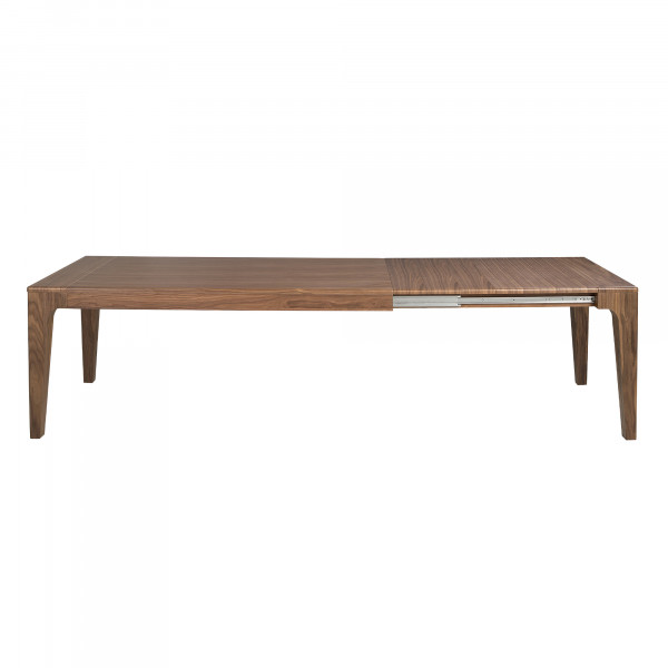Table de salle à manger rectangulaire extensible de design moderne avec plateau et structure en bois plaqué noyer naturel. Son style élégant ainsi que sa capacité d’adaptation en font un meuble entièrement fonctionnel et polyvalent au quotidien.